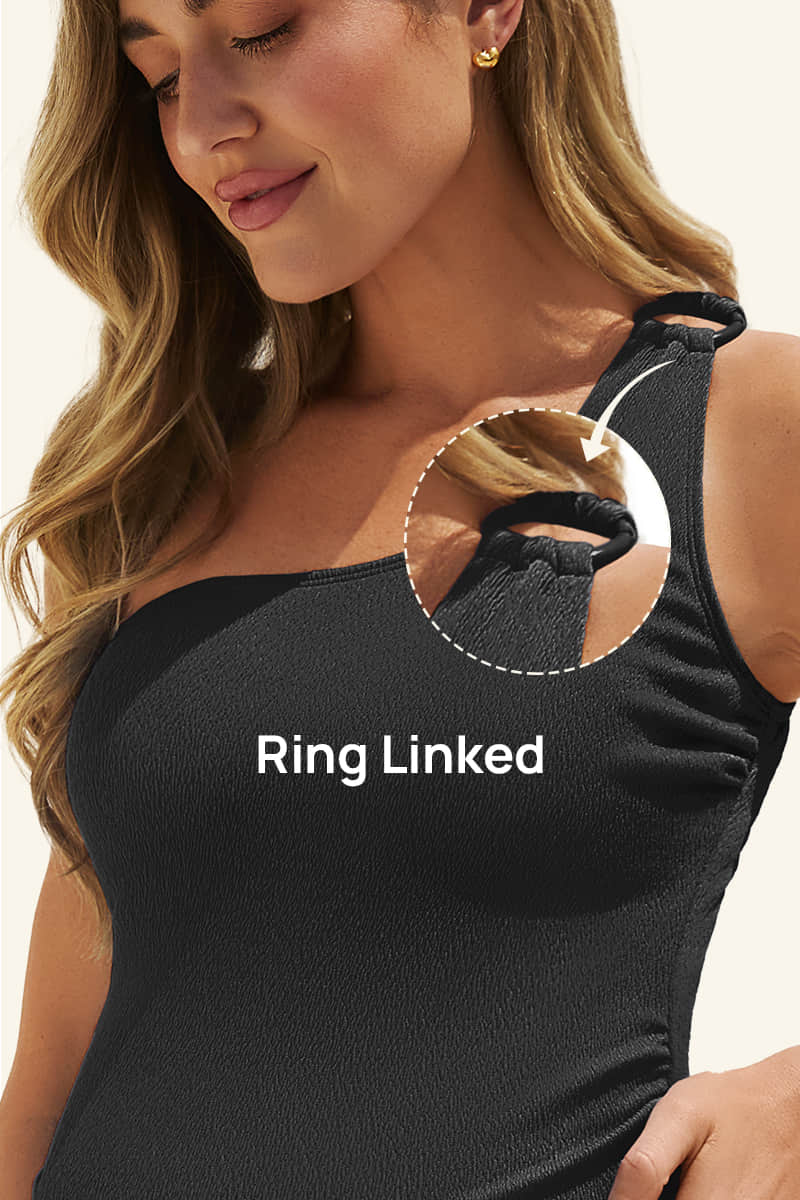 Maternity One Shoulder Ring Linked Swimsuit | One Piece Bathing Suit