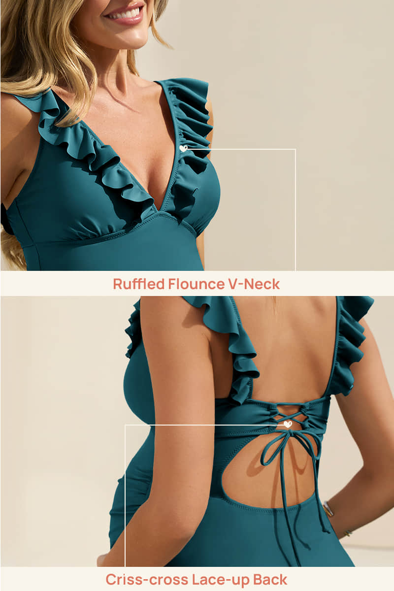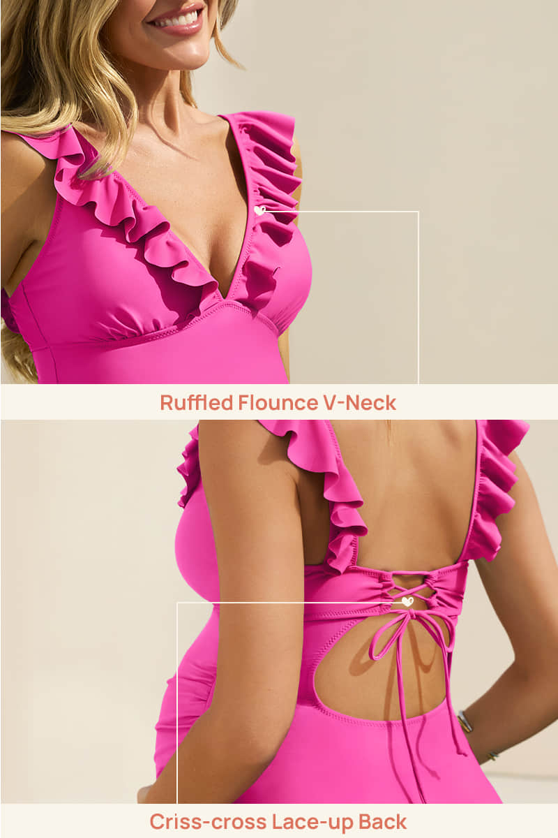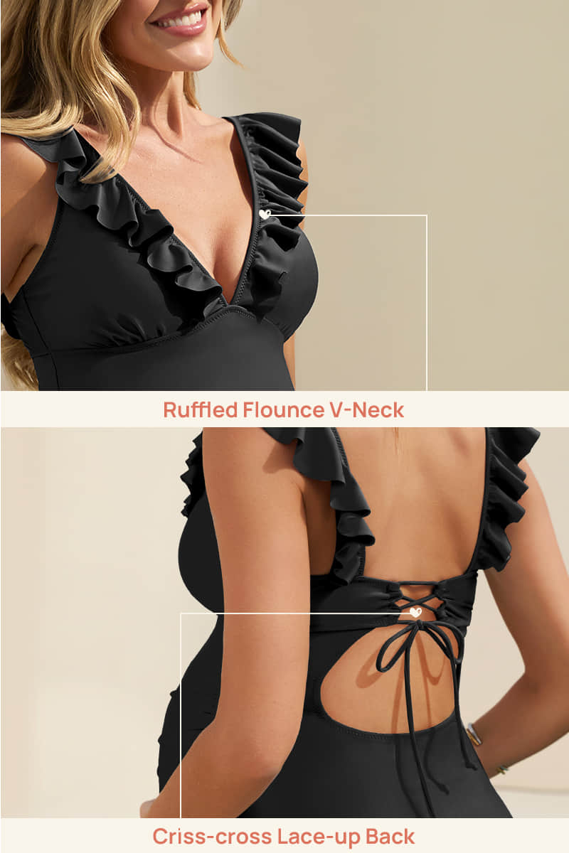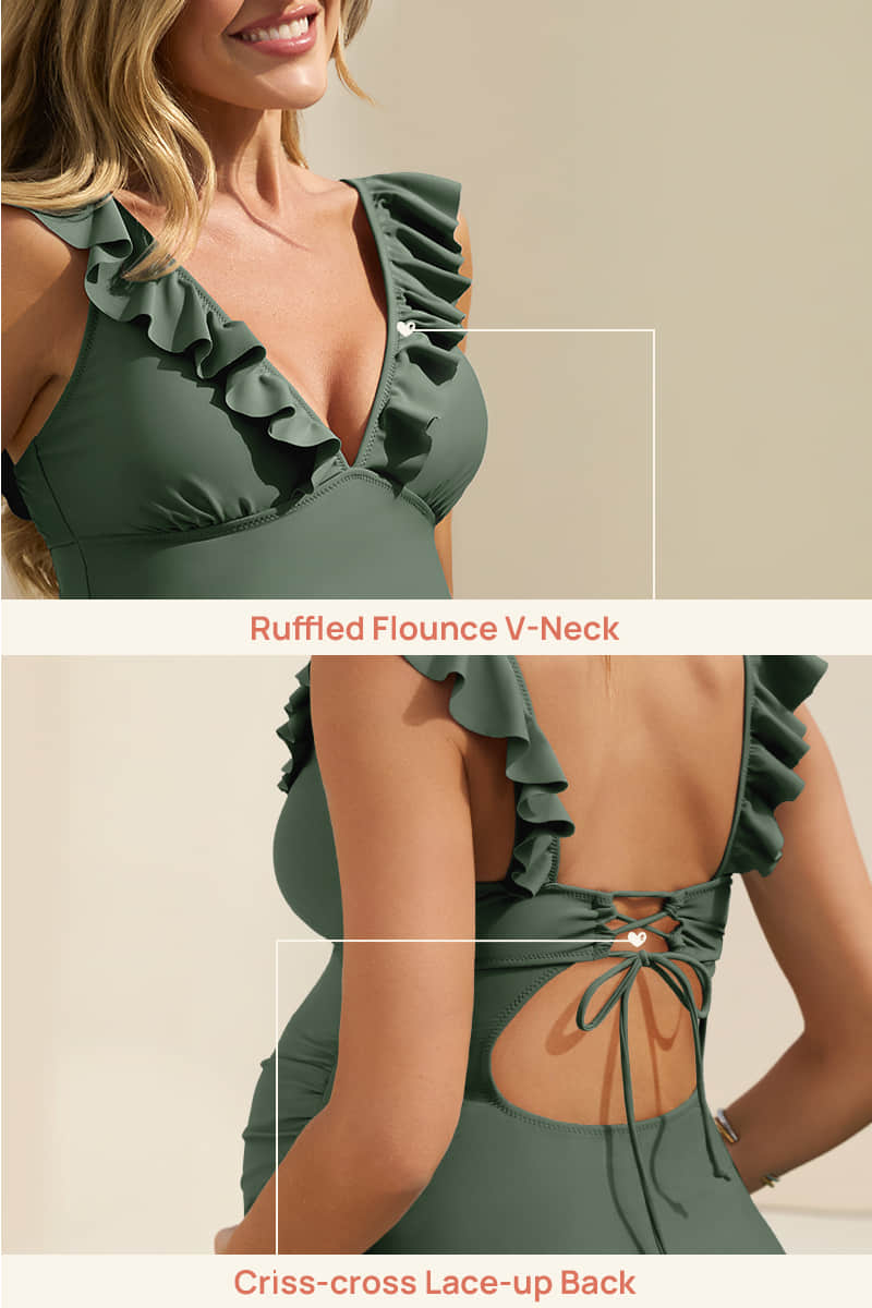 Ruffle One Piece Maternity Bathing Suit With Lace-up Back