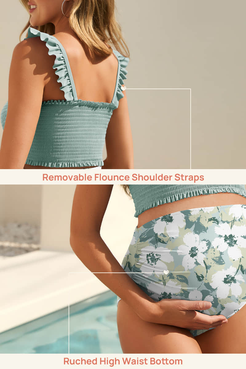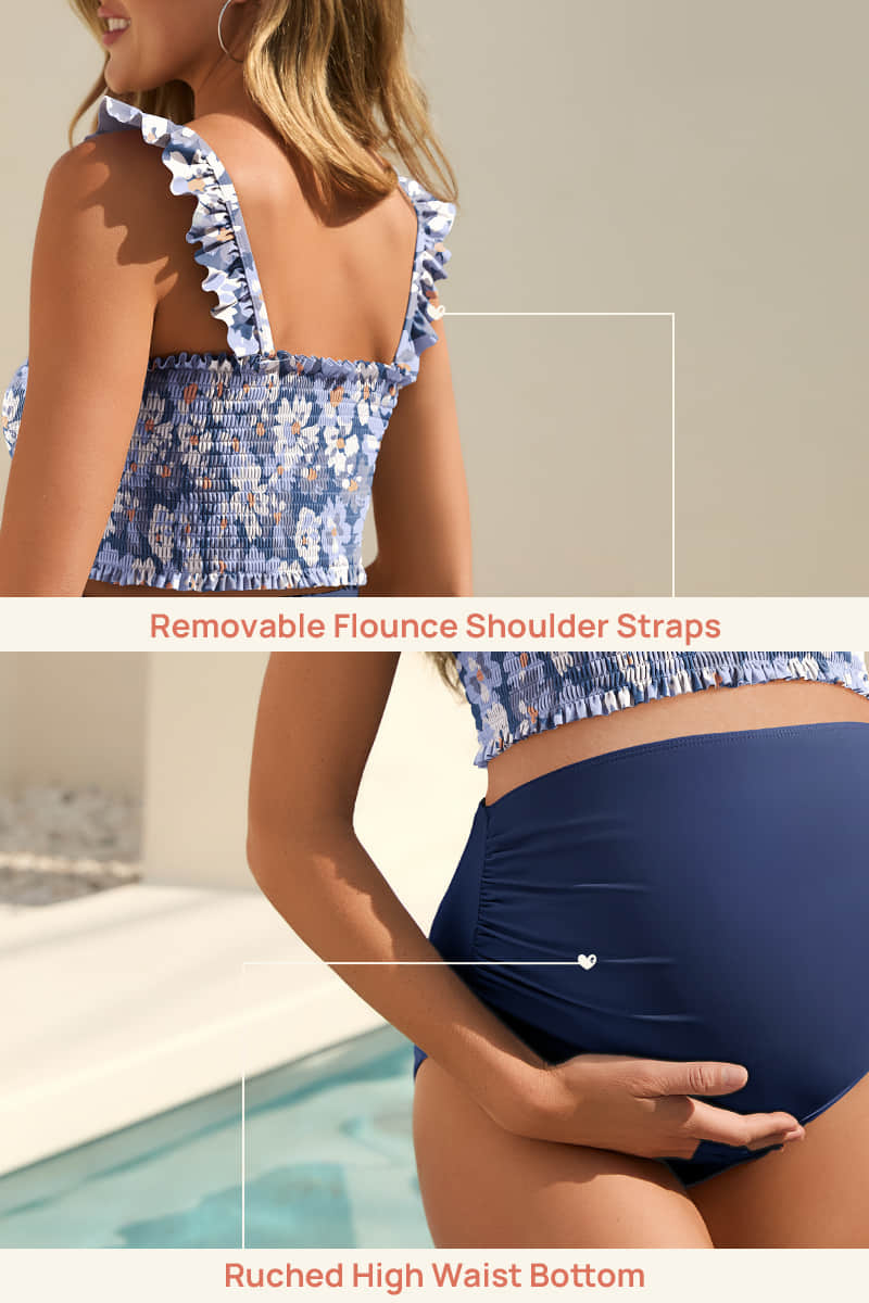 Ruffled Maternity Swimsuit Two Piece | High Waisted Bikini Bottoms