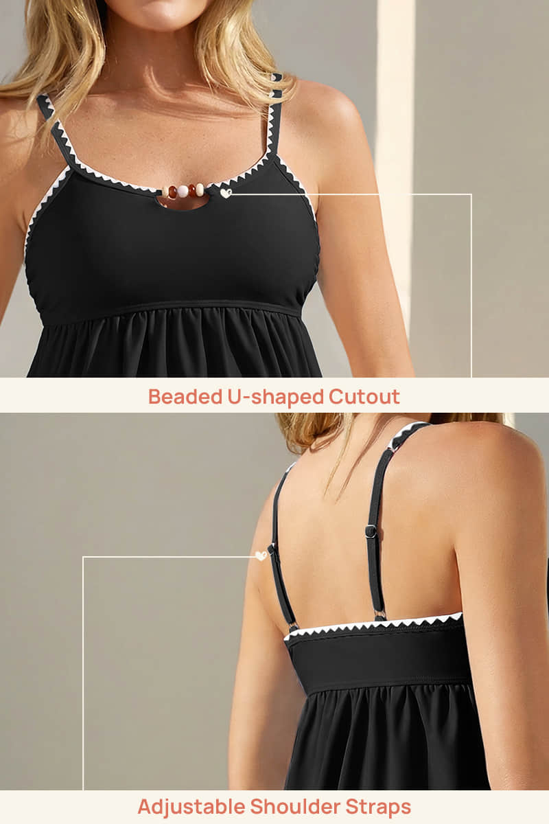 Maternity Two Piece Tankini with Ruffle Hem and Boho Bead Details