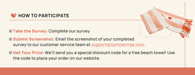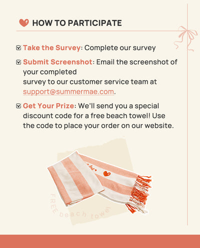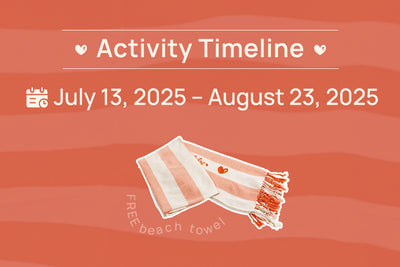 📜 Terms & Conditions The discount code is valid only during the activity period. The free beach towel is non-returnable and non-exchangeable. Limit one discount code per customer. We reserve the right to modify or cancel the activity at any time.